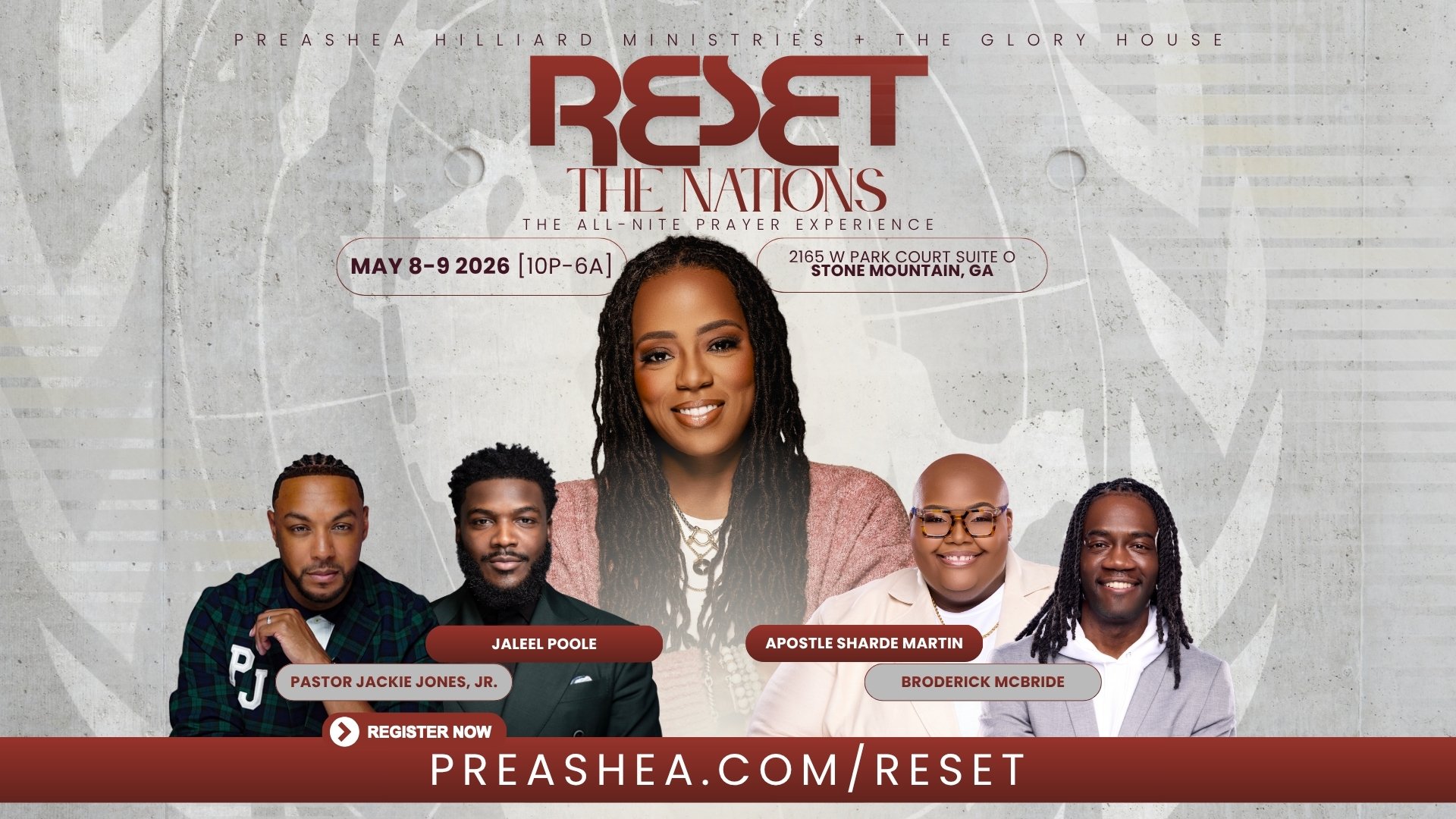 RESET THE NATIONS: The All-Nite Prayer Experience is a prophetic call for watchmen to gather in Atlanta for a night of focused intercession over our cities, our nation, and the nations of the world. In a time of war, instability, and global shaking, the Church must pray.